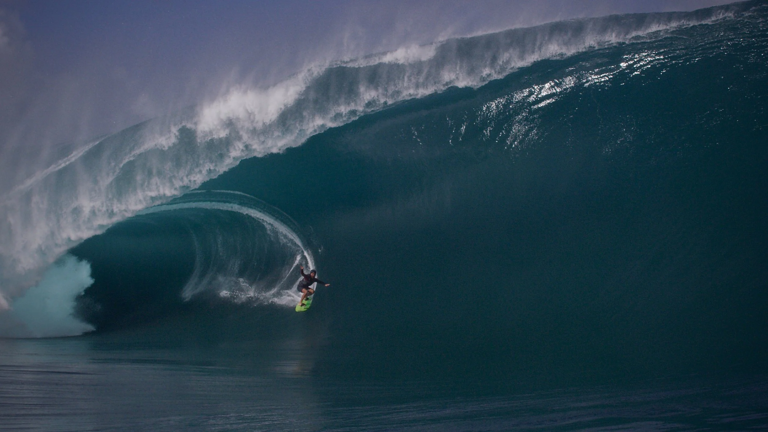 TB: I tend to shoot mostly from land. But now a lot of these places that break big, like in Tahiti where the surf breaks off a reef, you have to shoot from a boat. When I want to get the ultimate angle, I shoot looking into the wave from the back of a jet ski. I’ve had a few dangerous moments—especially at Nazaré, which is the world’s biggest wave. You don’t want to ever get hit by it.